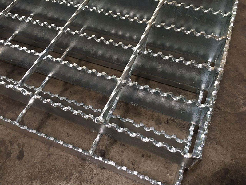 齒型踏步板(又叫防滑踏步板)齒形踏步板由一面是鋸齒狀的扁鋼焊接而成,齒形踏步板采用熱浸鍍鋅表面處理,具有很強的防銹力,除具有普通踏步板的特點和用途以外還具有較強的防滑能力,尤其適用于潮濕、滑膩的地方,海上采油平臺等。齒形踏步板在踏步板標示中用字母“S"表示。如:G323/30/50SG,解讀這個規(guī)格里面的“S"就是齒形踏步板的意思,全部的解釋就是323/30/50的熱鍍鋅齒形踏步板。