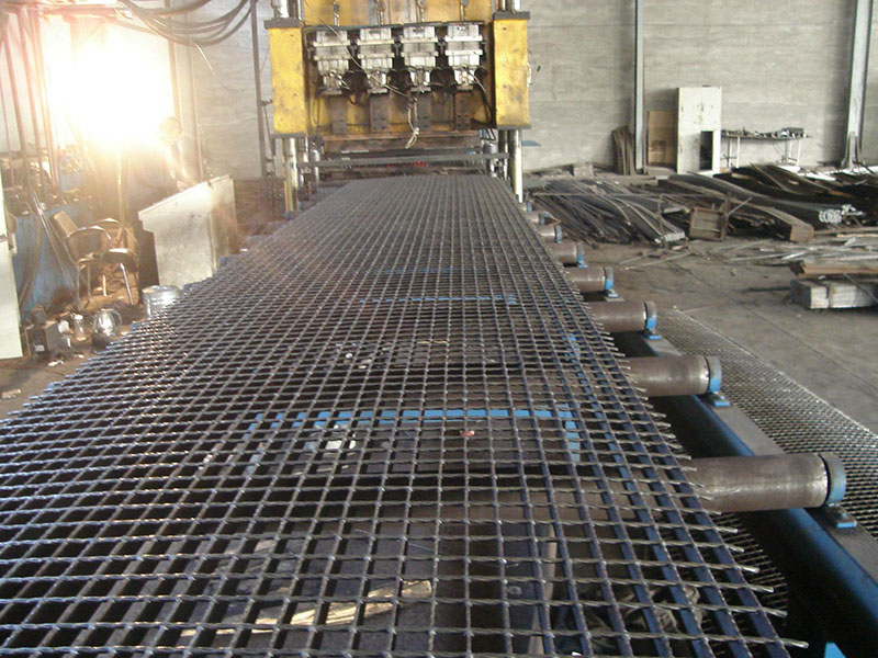 壓焊鋼格柵板是把經過扭絞的5mm×5mm,6mm×6mm或8mm×8mm界面的方鋼與若干根受荷扁鋼成垂地焊接成整體,構成具有良好承載能力的格柵型結構板。